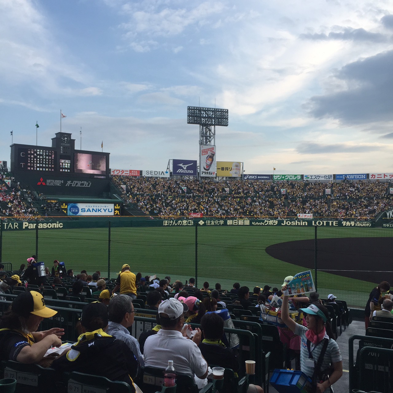 広島との首位攻防ともあって平日だというのに甲子園は超満員!