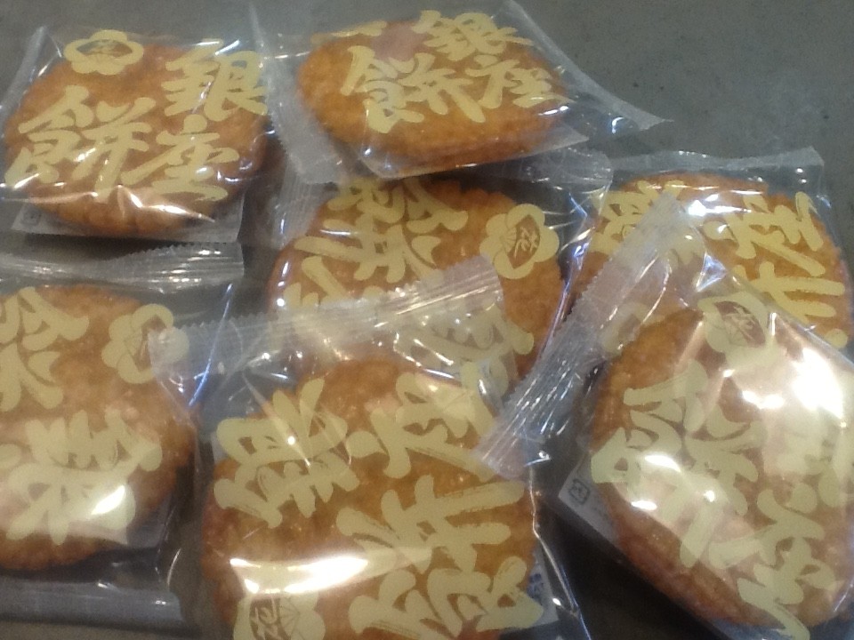 今日の差し入れは 揚げ煎餅「銀座餅」