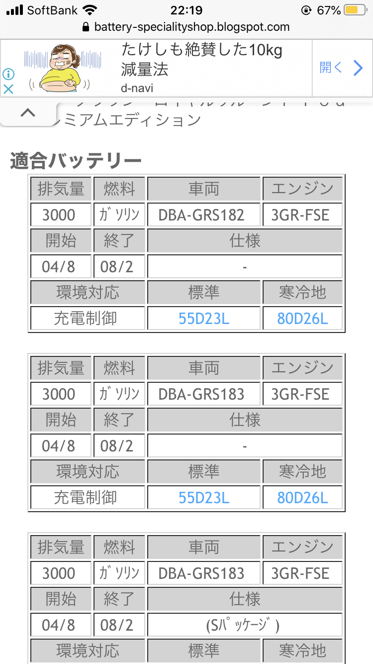 バッテリーの適合を探すのでギブアップ…