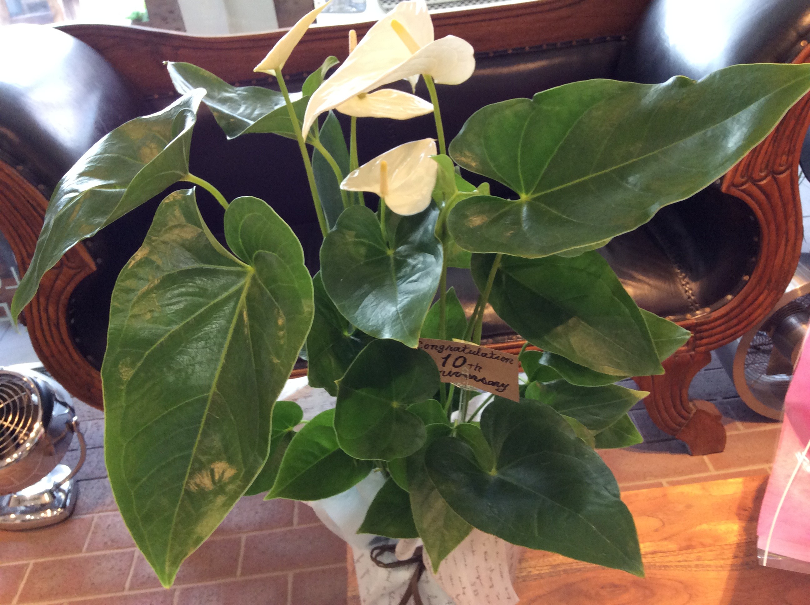 以前、仲良しのお客様から頂いた周年祝いのお花が少しの風で