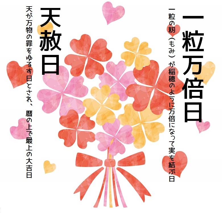 ちなみに凄く縁起の良い日は一粒万倍日という日があり、月に6回くらいあります。