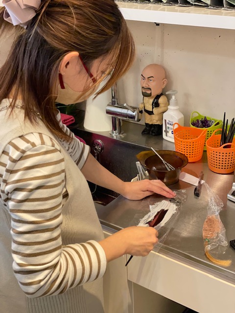暇な時間を見つけては毛束を染めてカラーチェック!