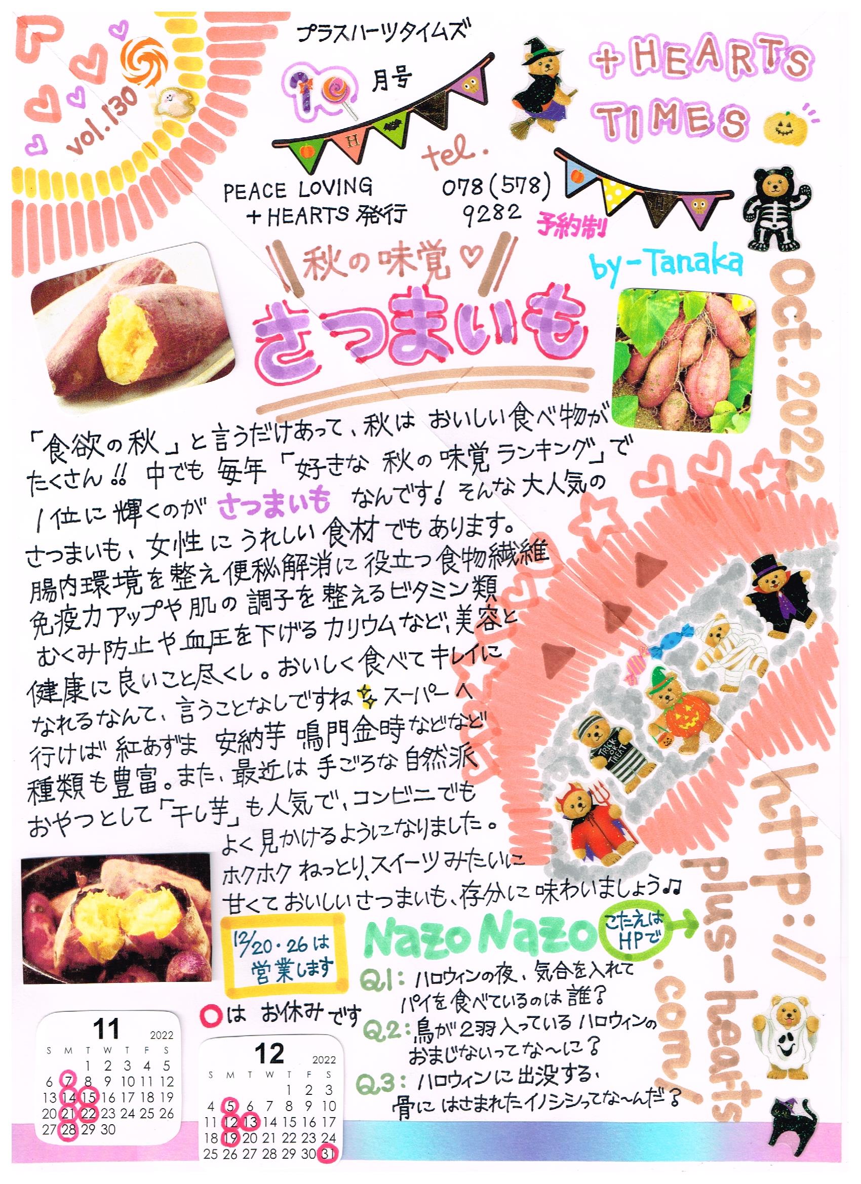 今月の+HEARTS TIMESは田中プレゼンツ「秋の味覚サツマイモ」特集♪