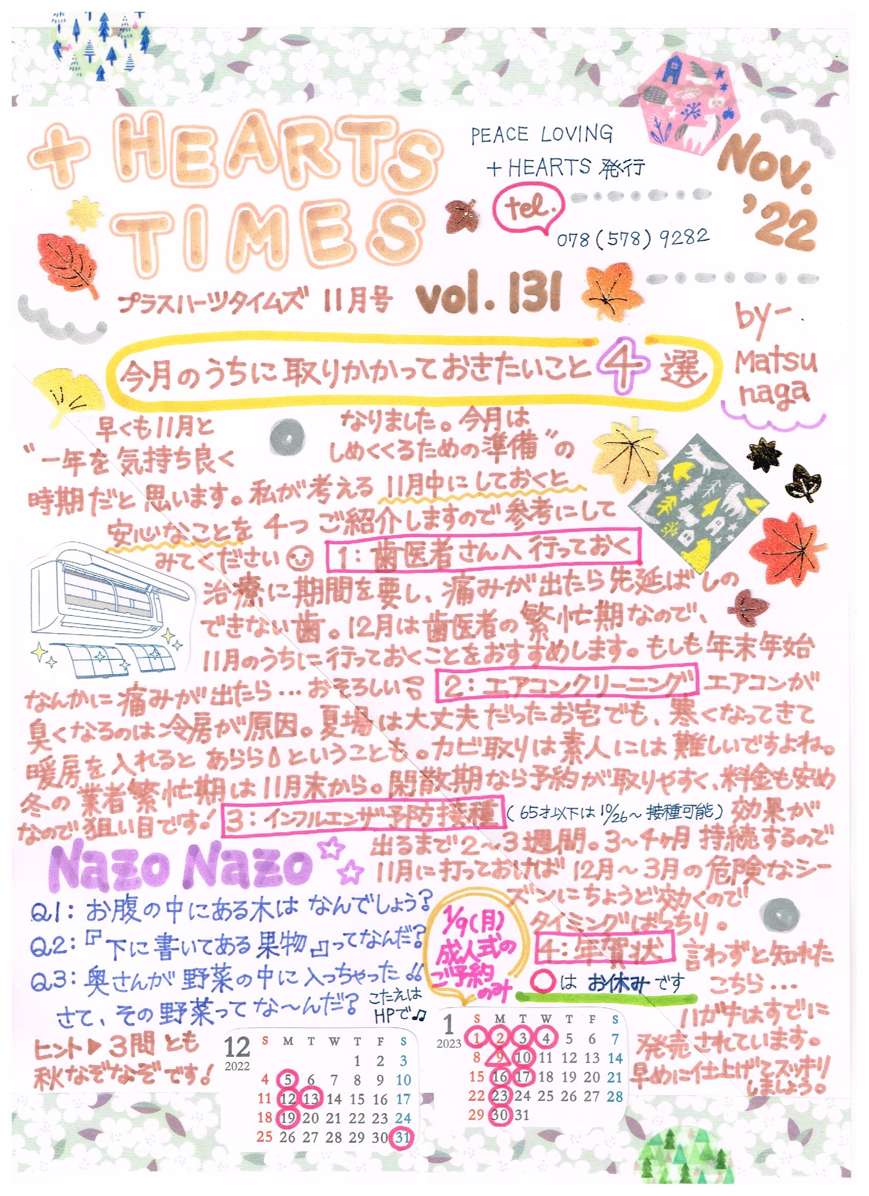 みなさん こんにちは+HEARTS TIMES Novemberです