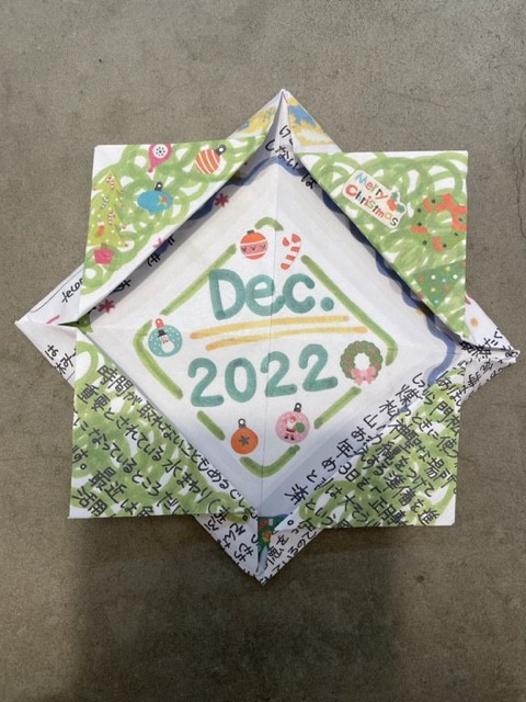 今月はクリスマスリースの形に折って皆様のご来店お待ちしておりますm(_ _)m