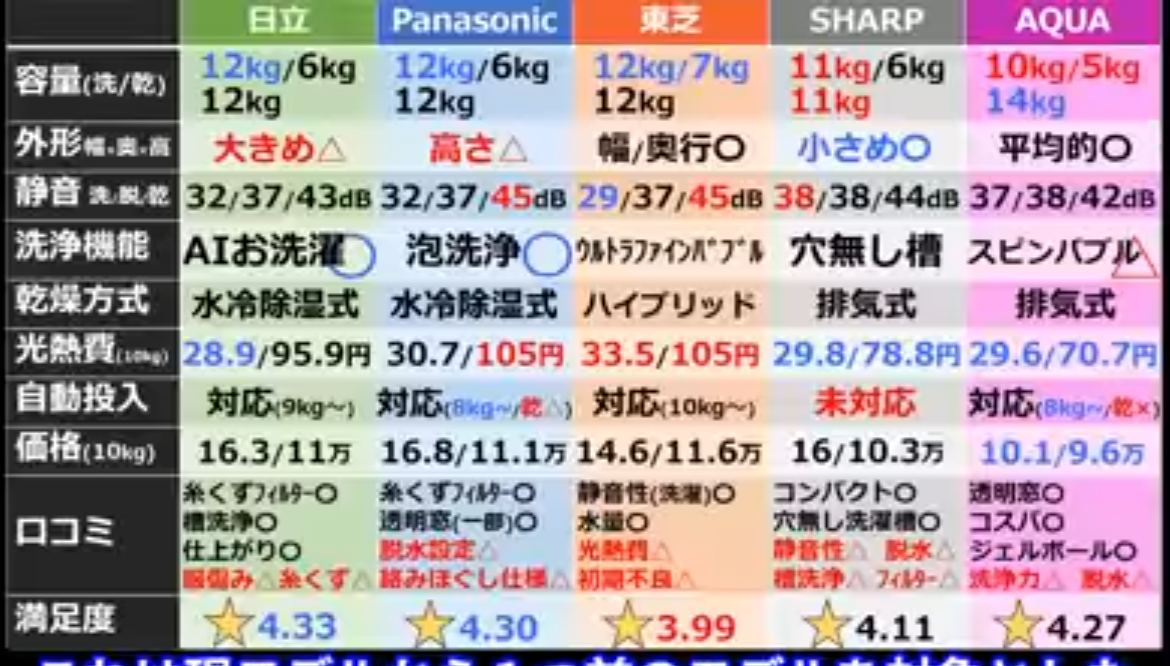静音性、洗浄力、省エネ、小スペース、新機能