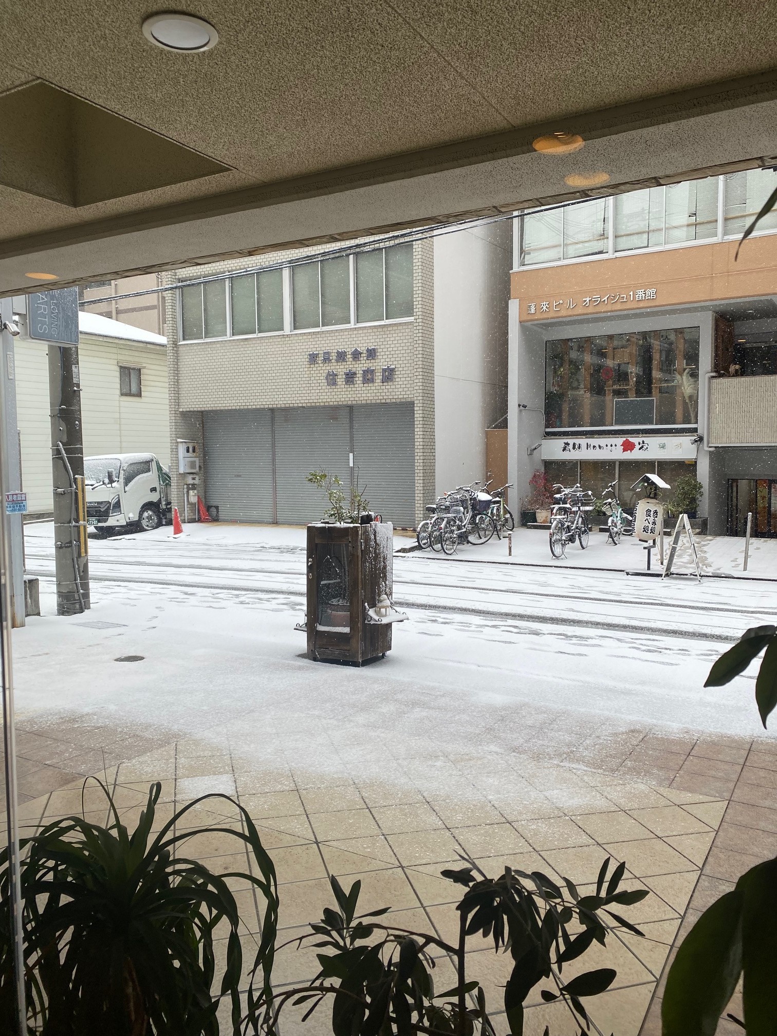 寒いな〜と思って窓を見てみるとチラホラ雪が降り始めてました。