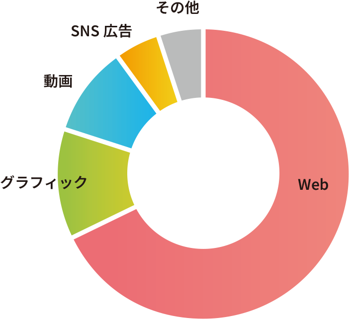 Web制作を主軸に、グラフィック・動画・SNS広告など多様な制作実績がございます。案件の目的や特性に応じて、最適な表現とクリエイティブをご提案いたします。